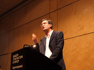 Παρά το δύσκολο της ώρας και της ημέρας, πέραν των 150 εκπαιδευτικών συμμετείχαν στη σημερινή εκπαιδευτική ημερίδα της Προοδευτικής Κίνησης Δασκάλων και Νηπιαγωγών και της Προοδευτικής Κίνησης Καθηγητών, με θέμα : Αναλυτικά Προγράμματα – Η διδασκαλία της γλώσσας. Στην εκδήλωση παρουσίασαν εισηγήσεις ο Γιώργος Τσιάκκαλος, Πρόεδρος της Επιτροπής Αναλυτικών Προγραμμάτων και η Σταυρούλλα Τσιπλάκου, καθηγήτρια στο Πανεπιστήμιο Κύπρου. Την εκδήλωση συντόνιζε ο πρόεδρος της Προοδευτικής Κίνησης Δασκάλων και Νηπιαγωγών, Λάζαρος Αβραάμ, ενώ εισαγωγική παρέμβαση έκανε ο πρόεδρος της Προοδευτικής Κίνησης Καθηγητών, Σωτήρης Χαραλάμπους. Μετά την κατάθεση των εισηγήσεων ακολούθησε συζήτηση.