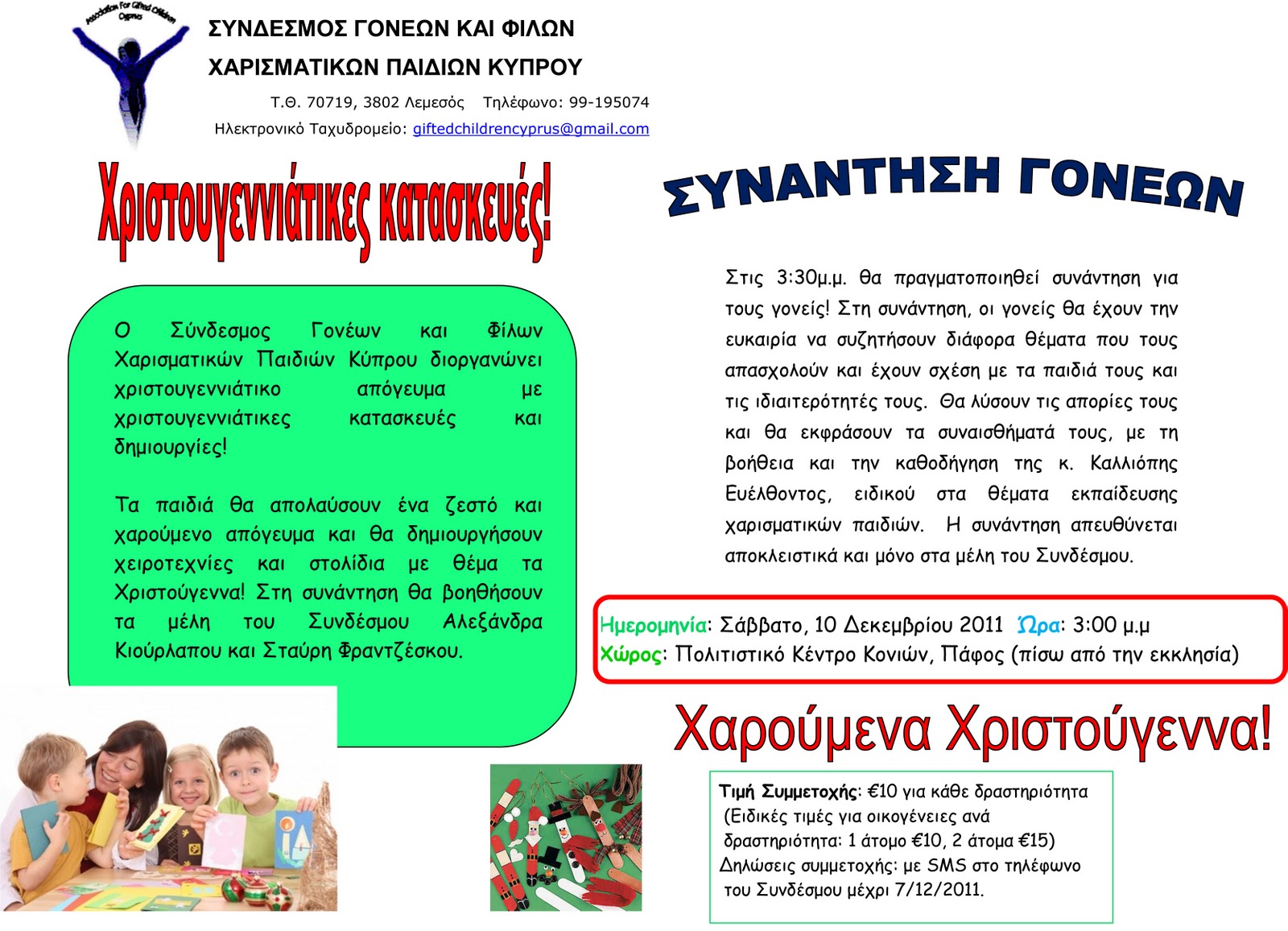 χριστουγεννιάτικο απόγευμα με χριστουγεννιάτικες κατασκευές και δημιουργίες By Admin|2016-10-21T19:40:11+02:004 Δεκεμβρίου, 2011|Categories: Ανακοινώσεις|0 Σχόλια Share , Choose Your Platform! FacebookTwitterLinkedInPinterestEmail Σχετικά Άρθρα Εκλογές ΠΟΕΔ 2020 – Υποψήφιες/οι Gallery Εκλογές ΠΟΕΔ 2020 – Υποψήφιες/οι 6 Σεπτεμβρίου, 2020 Στον αστερισμό της αξιολόγησης : Ενιαίο Σχέδιο Αξιολόγησης Gallery Στον αστερισμό της αξιολόγησης : Ενιαίο Σχέδιο Αξιολόγησης 27 Φεβρουαρίου, 2020 ΤΑ ΜΥΣΤΙΚΑ ΤΗΣ ΕΠΙΚΟΙΝΩΝΙΑΣ: 3 εργαλεία για καλύτερη επικοινωνία με τα παιδιά! Gallery ΤΑ ΜΥΣΤΙΚΑ ΤΗΣ ΕΠΙΚΟΙΝΩΝΙΑΣ: 3 εργαλεία για καλύτερη επικοινωνία με τα παιδιά! 22 Φεβρουαρίου, 2020 ΑΥΤΙΣΜΟΣ – Κλινική εικόνα και διαχείριση συμπεριφορών Gallery ΑΥΤΙΣΜΟΣ – Κλινική εικόνα και διαχείριση συμπεριφορών 18 Ιανουαρίου, 2020 ΤΟ ΠΑΡΑΜΥΘΙ ΩΣ ΜΕΣΟ ΑΝΑΠΤΥΞΗΣ ΣΥΝΑΙΣΘΗΜΑΤΙΚΗΣ ΝΟΗΜΟΣΥΝΗΣ Gallery ΤΟ ΠΑΡΑΜΥΘΙ ΩΣ ΜΕΣΟ ΑΝΑΠΤΥΞΗΣ ΣΥΝΑΙΣΘΗΜΑΤΙΚΗΣ ΝΟΗΜΟΣΥΝΗΣ 13 Ιανουαρίου, 2020