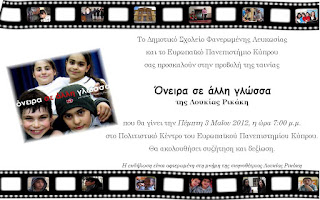 “Όνειρα σε άλλη γλώσσα” την Πέμπτη 3 Μαΐου 2012 η ώρα 7μ.μ. στο Πολιτιστικό Κέντρο του Ευρωπαϊκού Πανεπιστημίου